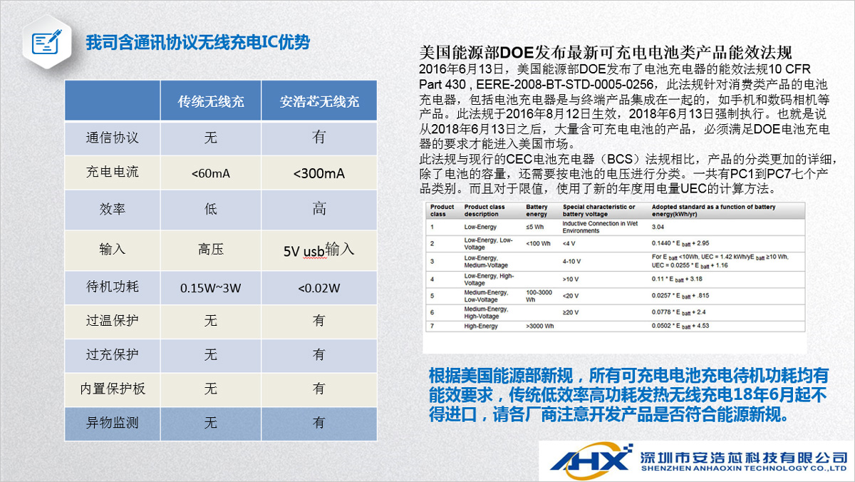 我司無(wú)線充電IC方案具有體高、成本優(yōu)勢(shì)明顯、應(yīng)用電路簡(jiǎn)單等特點(diǎn),發(fā)射和接收IC集成度高,帶有通訊協(xié)議,具有異物識(shí)別、過充保護(hù)、過放保護(hù)、短路保護(hù)等功能。